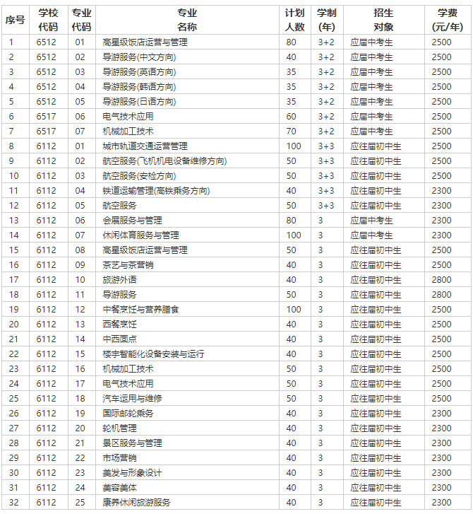 石家莊旅游學校2023年招生專業