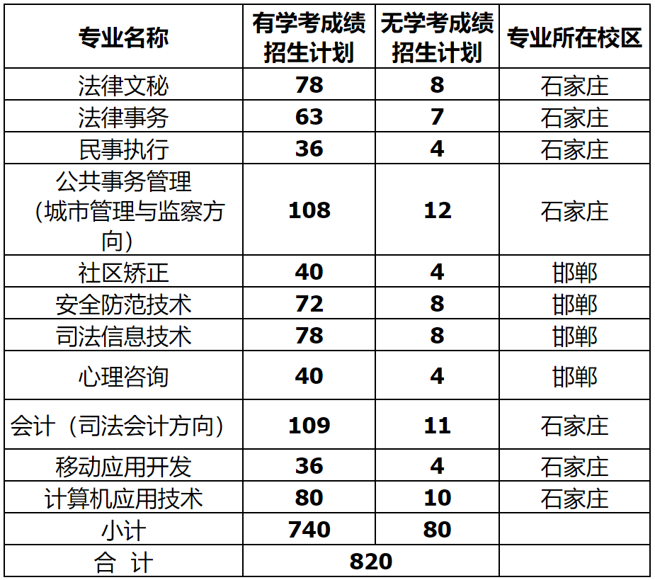 河北司法警官職業學院2022年高職單招簡章
