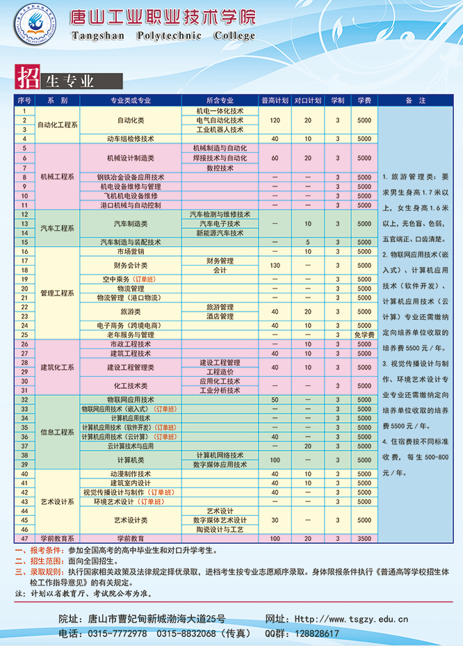 唐山工業(yè)職業(yè)技術(shù)學(xué)院2022年高招計(jì)劃