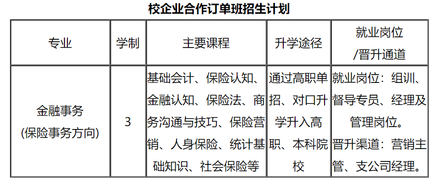 金融事務(保險事務方向)專業是培養專門從事保險及相關行業實際工作的應用型人才。通過三年系統的專業學習,學生全面掌握保險專業知識,具備較高的專業素質,富有敬業精神及保險職業責任感,畢業后能勝任保險業經營及管理工作。